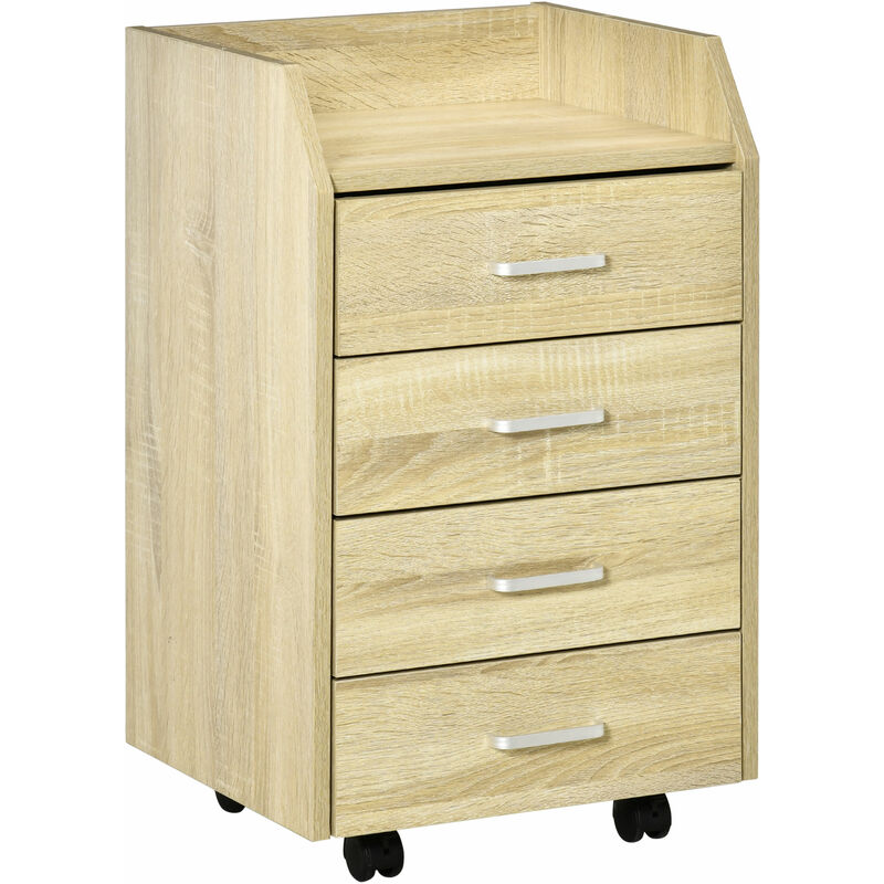 Vinsetto - Caisson de bureau rangement bureau sur roulettes 4 tiroirs coulissants plateau à rebord mdf panneaux particules aspect chêne clair