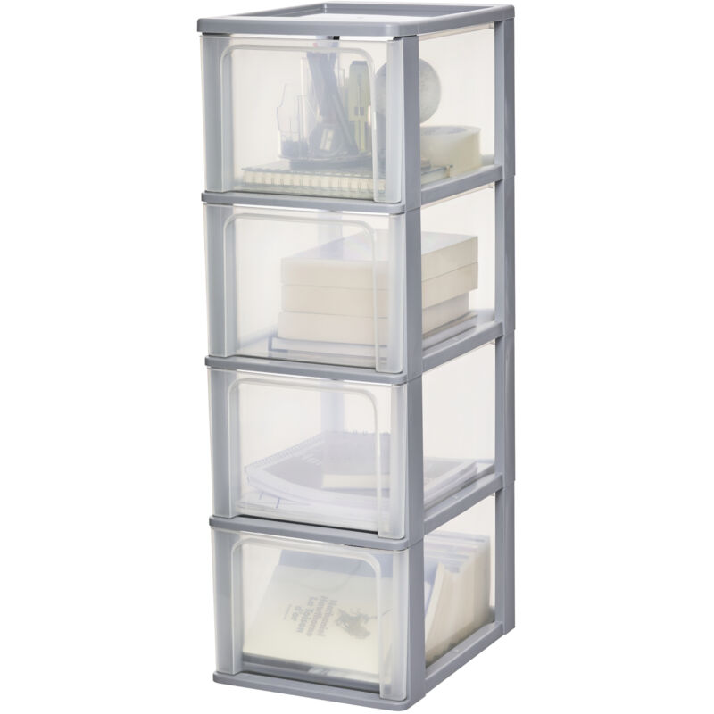 Iris Ohyama, Caisson de rangement plastique A4, 4 Grands Tiroirs, Gris, OCH-2400