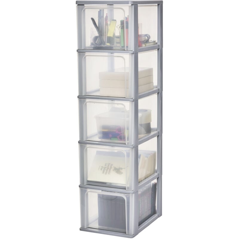 Iris Ohyama, Caisson de rangement plastique A4, 5 Grands Tiroirs, Gris, OCH-2500