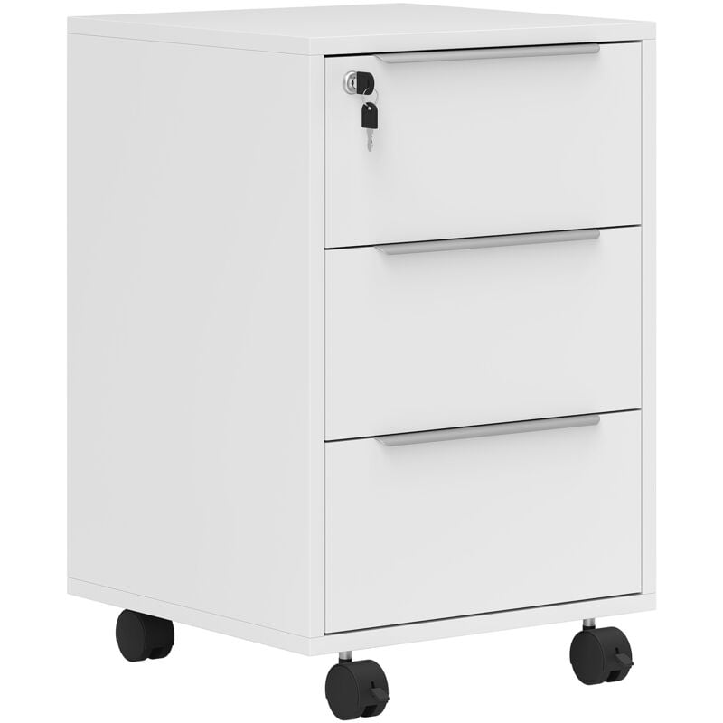 Homcom - Caisson de bureau rangement bureau sur roulettes 3 tiroirs verrouillables dim. 40L x 41,5l x 61,5H cm blanc