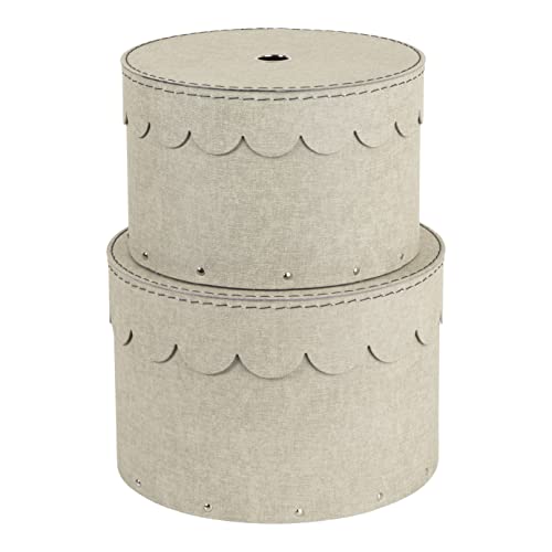 Bigso Box of Sweden lot de 2 boîtes rondes avec couvercle – boîte avec couvercle pour les vêtements, les jouets, etc. – caisson de rangement rond en panneaux de fibres et papier effet lin – beige