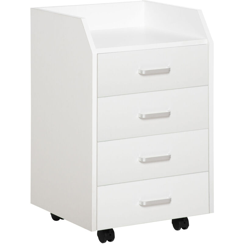 Vinsetto - Caisson de bureau rangement bureau sur roulettes 4 tiroirs coulissants plateau à rebord mdf panneaux particules blanc