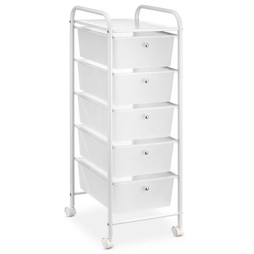 GOPLUS Caisson Bureau à Roulettes avec 5 Tiroirs, 40 x 49 x 65 CM, Meuble Rangement avec 4 Roues Mobile et Verrouillable pour Dossiers, Bureau, Documents, Papiers, Tour de Rangement pour Salon, Blanc