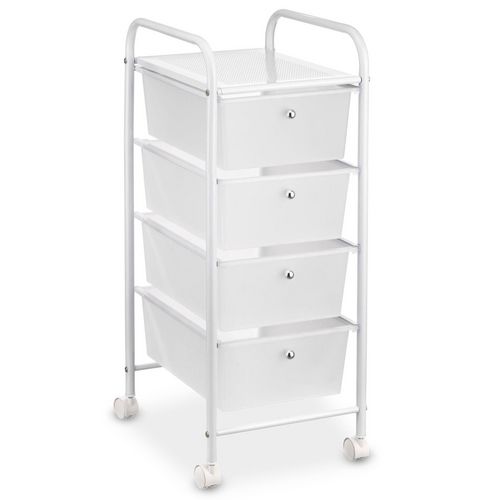Caisson sur roulettes GINA, en métal laqué blanc avec 4 tiroirs en plastique blanc blanc Taille unique