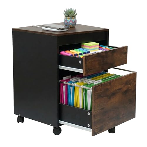 Relaxdays Caisson à roulettes with 2 tiroirs et dossiers Suspendus, 57x40x40 cm, Marron/Noir
