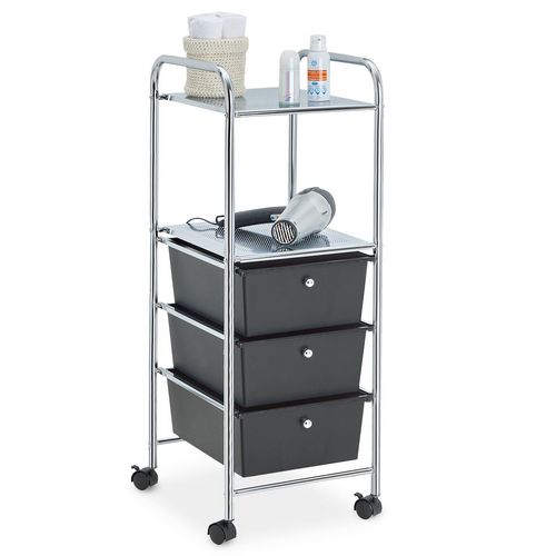 Caisson sur roulettes GINA, en métal chromé avec 4 tiroirs en plastique noir noir Taille unique