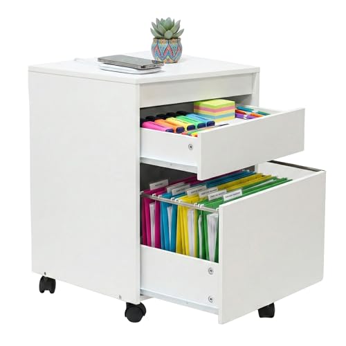Vasagle Caisson de Bureau à roulettes, Verrouillable, 2 Tiroirs, Blanc LCD22WV1