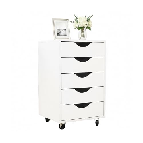 innytund Tour de rangement blanche à 5 tiroirs avec poulie - Caisson à roulettes - Pour bureau - 40 x 33 x 98 cm - Grande capacité - Tiroir simple et transparent pour bureau scolaire et maison