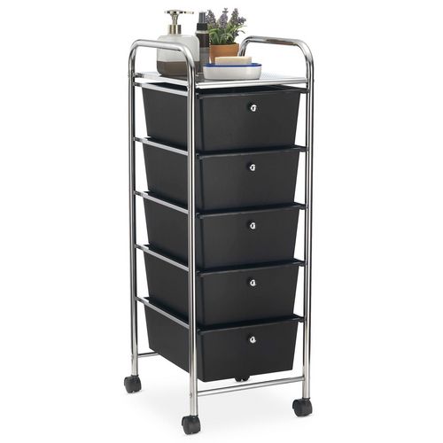 Caisson sur roulettes GINA, en métal chromé avec 5 tiroirs en plastique noir noir Taille unique