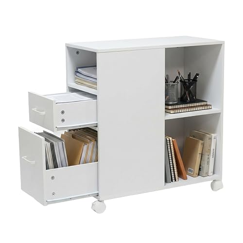 COSTWAY Caisson Bureau à Roulettes 4 Tiroirs, Caisson de Rangement pour A4, Lettre, 2 Grands Placards, Support d'Imprimante 5 Roues, 73 x 40 x 64,5 cm, Blanc (Blanc)