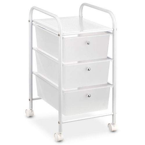 Caisson sur roulettes GINA, en métal laqué blanc avec 3 tiroirs en plastique blanc blanc Taille unique