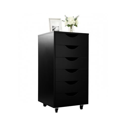 Relaxdays Caisson à roulettes avec 6 tiroirs, Meuble de Bureau Noir, 78 x 40 x 40 cm
