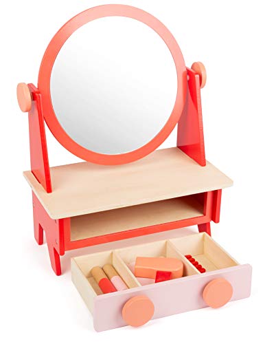 Small Foot 11409 Coiffeuse Retro avec Miroir, en Bois, avec Tiroir et 5 Ustensiles de Maquillage et de Coiffure