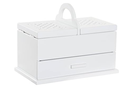 DRW Grande boîte à bijoux blanche en bois avec deux compartiments et tiroir 30 x 17 x 24 cm