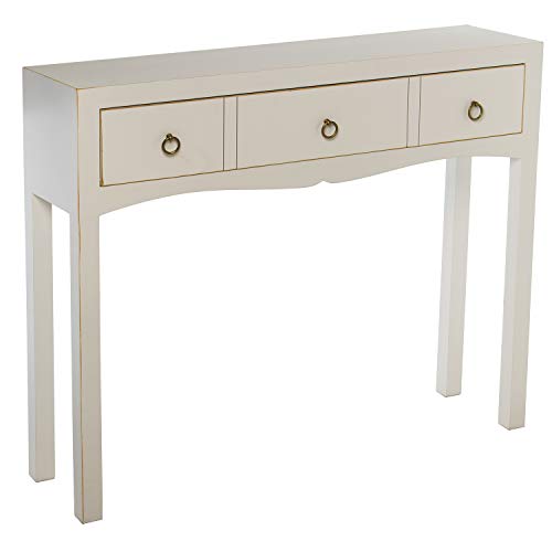 DRW Table d'entrée en Bois avec 1 tiroir en Blanc 94 x 24 x 78 cm