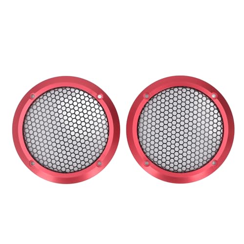 EIMSOAH Couvertures de Haut-parleurs, Protection en Maille Durable pour Voiture/Caisson de Basses avec Vis pour Haut-parleurs/cinéma Maison, 2 Pièces OD 97mm (Rouge)