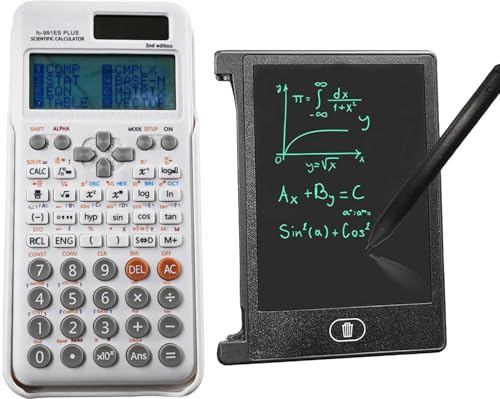 Solar Powered Engineering Scientific Calculator for FC-991ES Plus 2nd Edition with 4.4 inch LCD Erasable Writing Tablet, Portable Calculator-417 Functions with Notepad for School,Office(White)