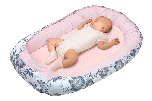 Medi Partners Reducteur de Lit Bebe - Réducteur Bébé 100x60x15cm Cocon et Naissance couffin Nid d'ange bilatéral Cale 100% Coton Minky (Fleurs avec Rose Clair Minky)
