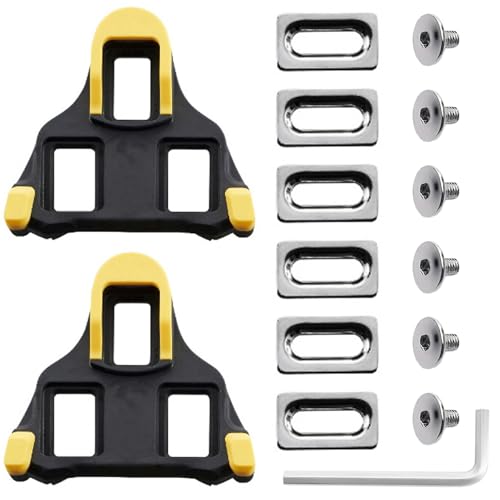 EnixwH 15 Pièces Cale Pied Velo, Cale 6° Compatible avec Les Cales de Vélo 3 Trous, Cales pour Chaussures de Cyclisme Antidérapant, Crampons SPD Vélo de Route pour VTT D'intérieur (Jaune)