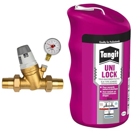 Caleffi Réducteur de pression d'eau 3/4" DN20 pour eau avec cartouche remplaçable et manomètre & Tangit Uni-Lock | Fil de nylon (bobine de 80 m) pour étanchéité des raccords filetés sur tuyaux