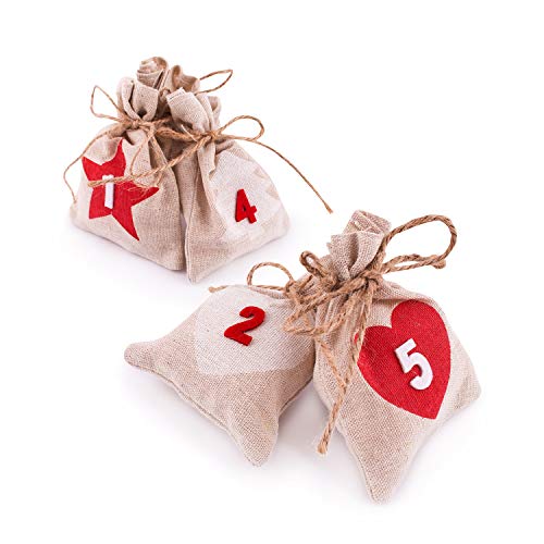 Pajoma Calendrier de l Avent sous Forme de sachets étoilés - 24 sachets de Jute numérotés - À remplir et à accrocher - pour Noël