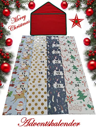 Magnifique calendrier de l'Avent à remplir soi-même en tissu composé d'enveloppes, de sacs en papier et d'étiquettes. Kit complet pour cadeau de Noël (classique)
