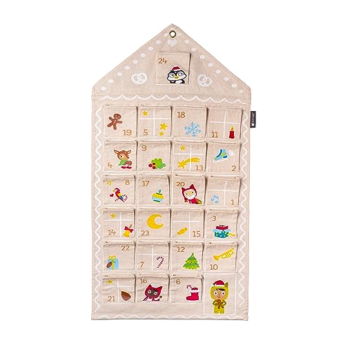 tonies Calendrier de l'Avent 2023 - Maison en pain d'épice - Calendrier de l'Avent à remplir 100% coton - Calendrier de l'Avent pour enfants avec 24 poches pliantes cousues