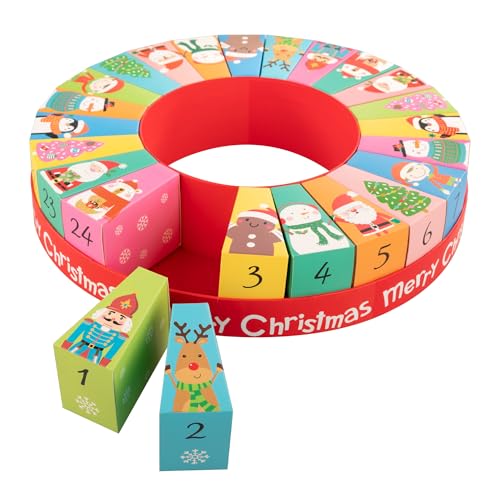 Idena 31492 - Calendrier de l'Avent à remplir, 24 boîtes-Cadeaux numérotées avec Motifs de Noël, Calendrier de Noël Rond d'environ 31,5 x 6,5 cm