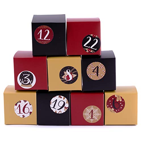 QOXEZY Lot de 24 boîtes de calendrier de l'Avent à remplir, compte à rebours pour calendrier de bonbons avec motifs de vacances uniques, 7 x 7 x 7 cm, conteneurs cadeaux en papier pour enfants et
