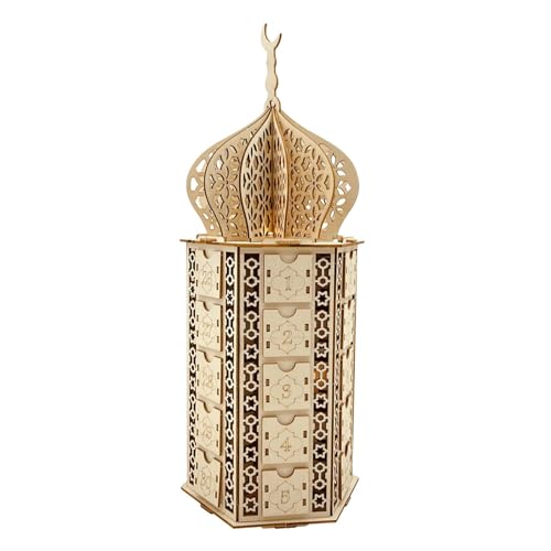 Oxxggkao Calendrier de l'Avent en bois pour le Ramadan avec tiroirs, compte à rebours de 30 jours