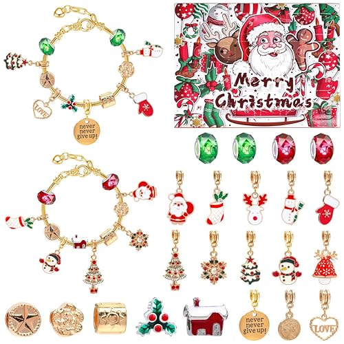 Calendrier de l'Avent 2025 pour Enfants Filles, 24 Jours Calendrier de Noël Bijoux Bracelets à Breloques Coffret Cadeau pour Filles de 5 6 7 8 9 10 11 12 ans