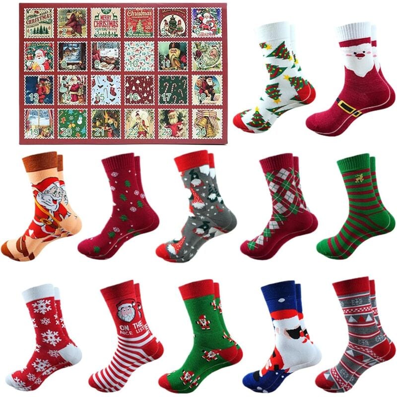 Calendrier De L'Avent Avec Chaussettes Pour Noël 24 Jours de Compte à Rebours pour Noël - 12 Paires De Chaussettes De Fêtes Classiques Pour Femmes