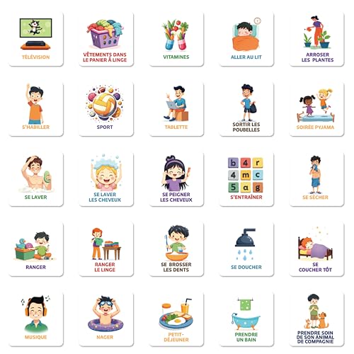 Smarfer - Pictogrammes magnétiques pour Tableau de Planification hebdomadaire - 50 pièces - Français - Enfants - Routine Quotidienne - planificateur d'autisme - aimants - Calendrier educatif
