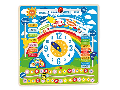 Janod - Roue du Temps en Bois FSC - Version Italienne - Calendrier éducatif pour Enfants - Jeu éducatif - Jouet en Bois FSC - À partir de 3 Ans, J09624