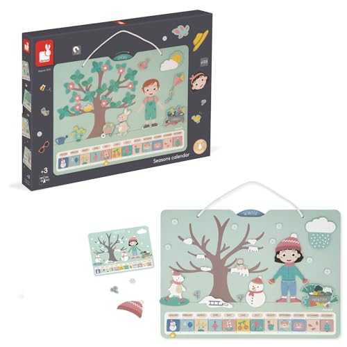 Janod - Calendrier des Saisons - Calendrier Enfant Educatif en Bois 42 x 32 cm - Magnétique - 125 Magnets - Apprentissage du Temps et des Saisons - Version Française - Dès 3 Ans - J05470
