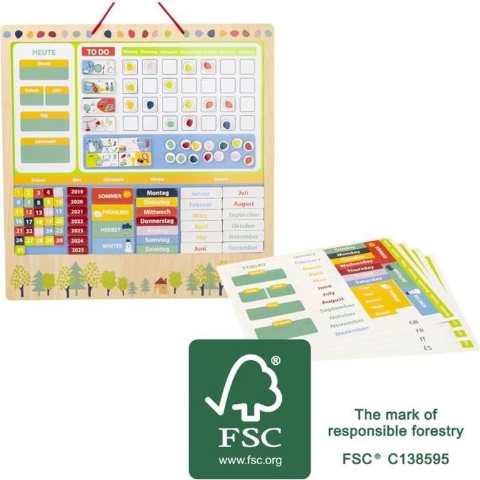Calendrier éducatif - small foot - Educate - Bois FSC - Magnétique - Multicolore