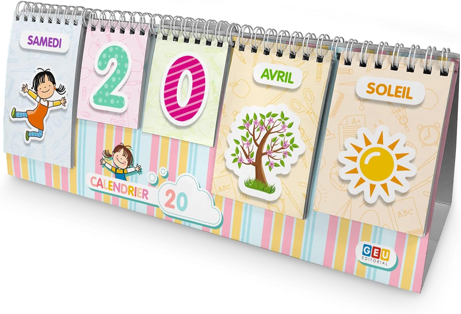 JEXNOVASHOP-Calendrier pour Enfant | Jeux Educatif Amusant et Intemporel | Permet d'apprendre les jours et les mois et saisons et temps Onglets combinables avec illustrations (Français)