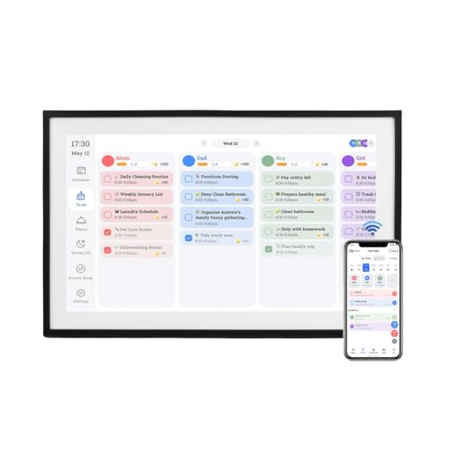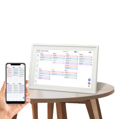 Cuifati Cadre Photo de Calendrier Numérique de Planificateur Mural WiFi, Gestionnaire de Planning Familial Facile à Utiliser, pour Les Maisons Modernes (Prise UE 100-240V)