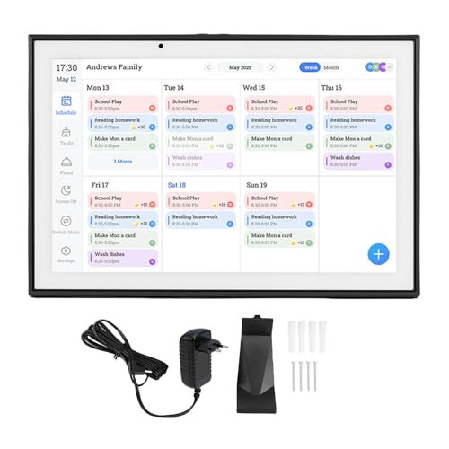 Annadue Calendrier Numérique Intelligent de 10,1 Pouces, Cadre Photo WiFi avec écran Tactile, Synchronisation Cloud, Organisateur Familial, Gestion des Tâches, pour la Cuisine (Prise UE)