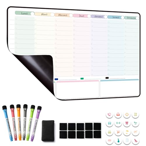 MCCORL Planning Semaine, Calendrier magnetique Frigo, Emploi du Temps, Planificateur Hebdomadaire, Tableau Organisateur Familial idéal pour Planification des Menus/Repas effacable en Français