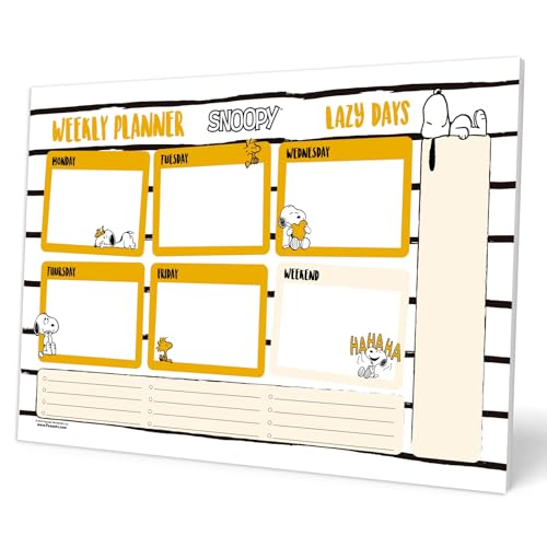 Grupo Erik Planificateur hebdomadaire A4 – Cadeaux Snoopy pour les amoureux des chiens | Planificateur quotidien familial non daté, calendrier de bureau, 54 pages détachables | Papeterie Snoopy