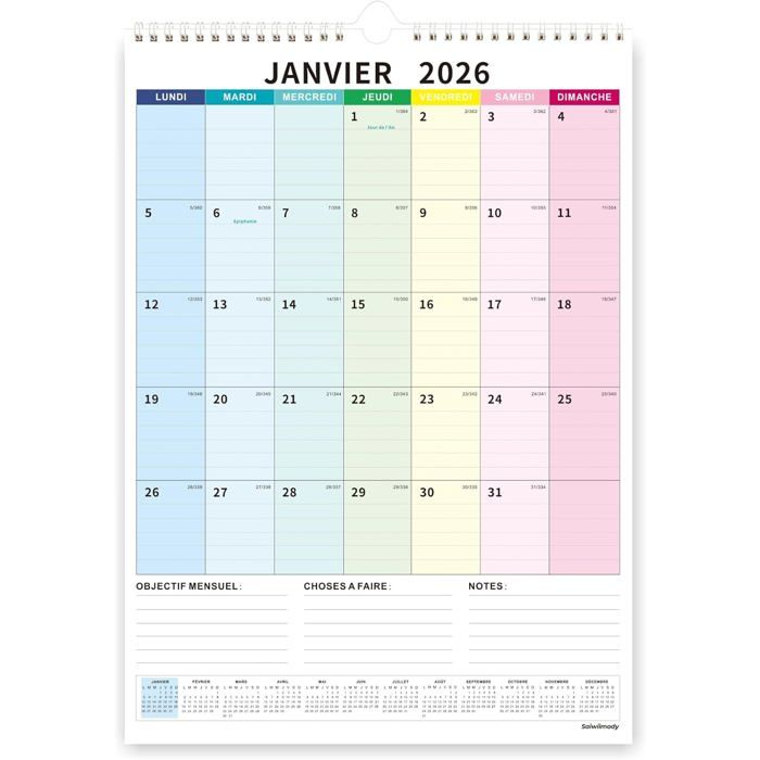 Calendrier 2026 Mural Coloré 31 x 21cm Familial Calendrier 2025 2026 Scolaire 18 mois Septembre 2025 à Décembre 2026 Mensuel