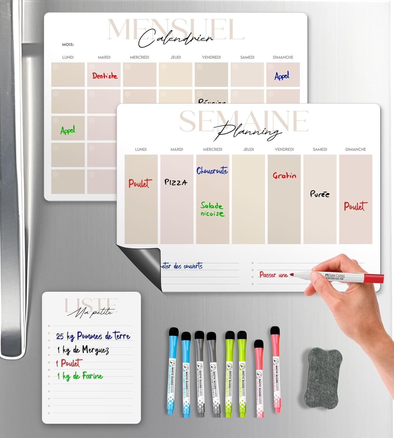 MCCORL Planning Semaine,Calendrier magnetique Frigo,emploi du temps,Planificateur Hebdomadaire,Tableau Organisateur Familial, Planning Mensuel,Planificateur des Menus/Repas effaçable-en Français