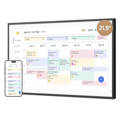 Dragon Touch Calendrier Numérique de 21,5" - Calendrier Mural Électronique 1920x1080 FHD, Calendrier de Bureau Écran Tactile avec Mémoire de 32 Go, Planificateur Familial Intelligent, TM21 Noir