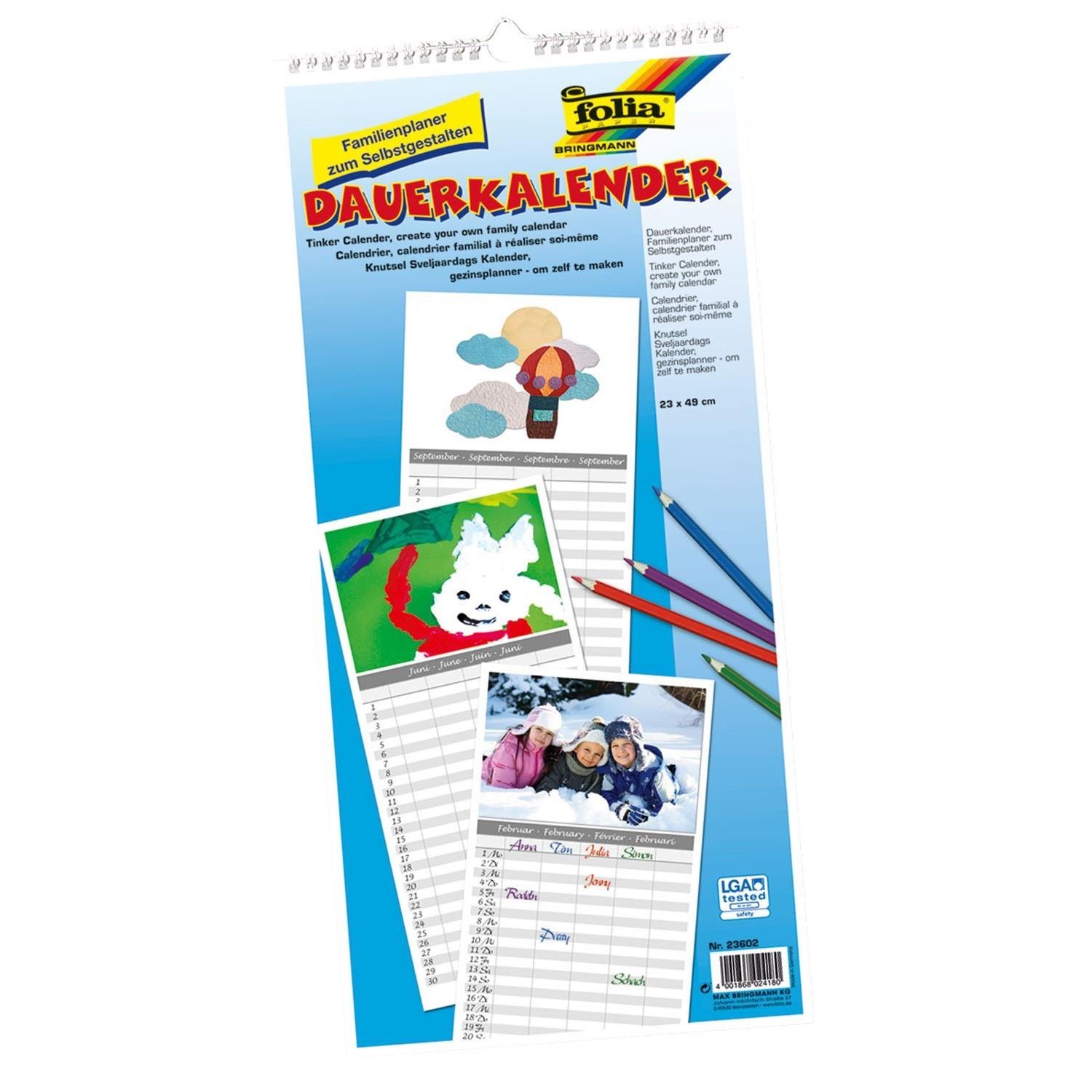 [23602] folia Calendrier mural créatif "calendrier familial" 230 x490 mm à Pe...