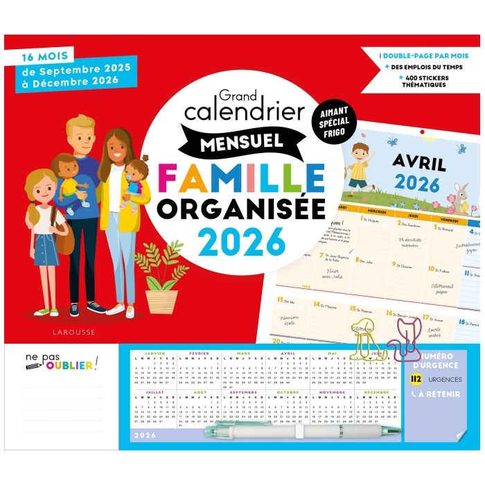 Grand calendrier mensuel Famille organisée 2026