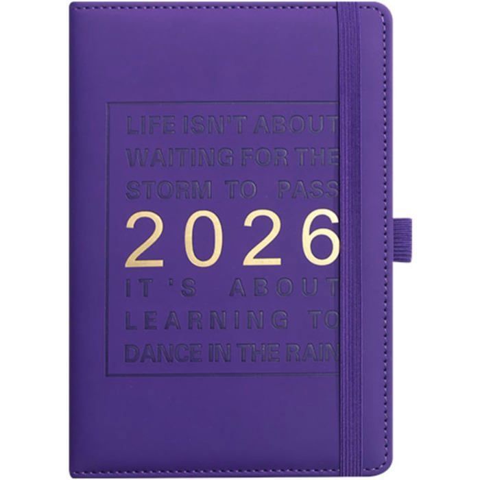 ®TONLRGY Agenda journalier calendrier 2026 couverture élastique en PU onglets de 12 mois adapté aux études et au bureauViolet
