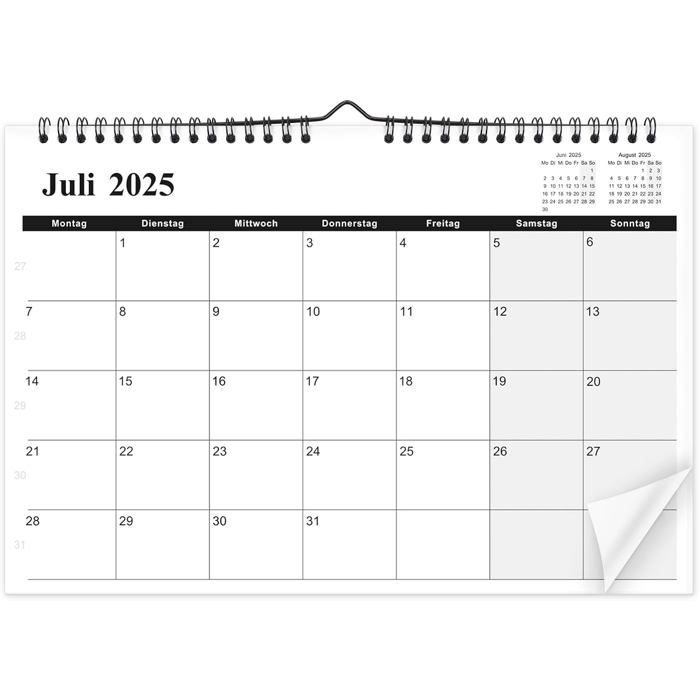Calendrier 2025 mural 2025 pour la maison et le bureau 2025 à 2026 juin calendrier mural A4 paysage calendrier mensuel 2025