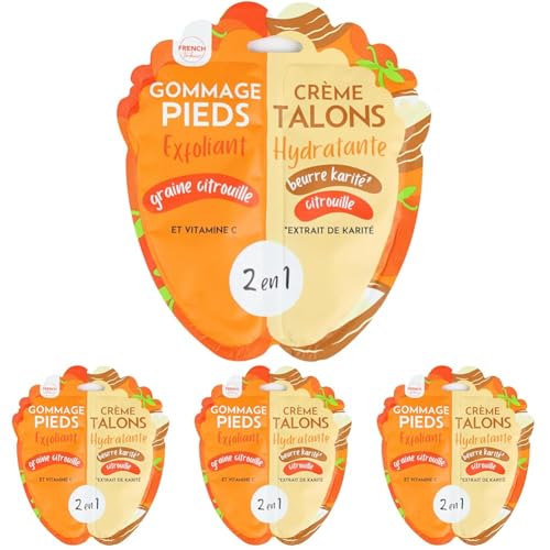 Feel Natural - Duo Gommage Nourrissant - Gel Hydratant Pieds - Graines de Citrouilles - Vitamine C - Exfoliant - Anti-Crevasse - Cors - Callosités - Soin Intensif Complet Peau - 300 grs (Lot de 4)
