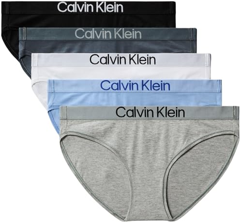 Calvin Klein Lot de 5 Culottes pour Femme Bikini, Bleu (Noir/Blanc/Gris chiné/pottourri/), XL, Bleu (Noir/Blanc/Gris chiné/Pot-pourri), XL